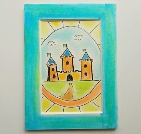 水彩画 額絵「おとぎの国」は、水彩紙に水彩、クレパスとペンで描いた作品です。