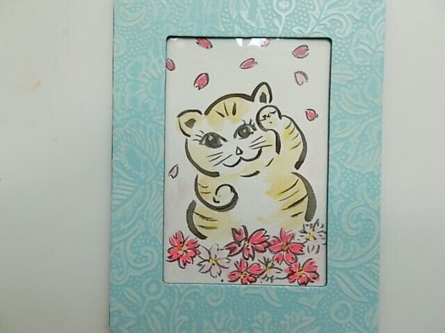 絵画 インテリア 水彩画 額絵 ネコのトラちゃんと花吹雪