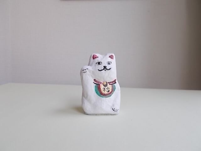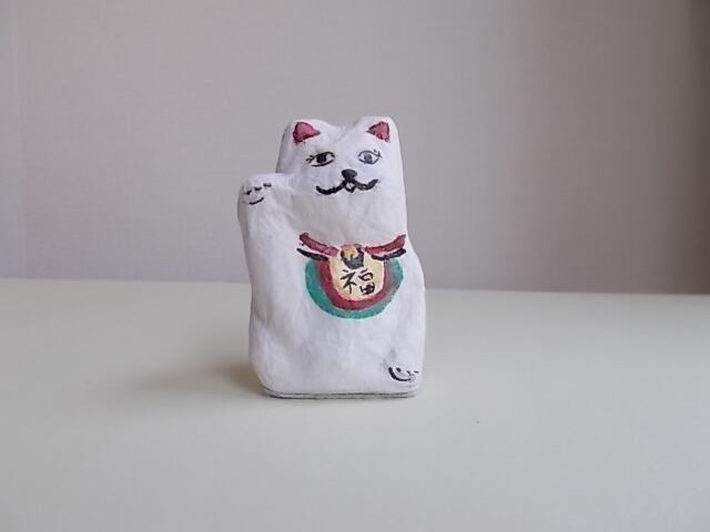 人形オブジェ「招き猫」は、紙子で制作をしています。