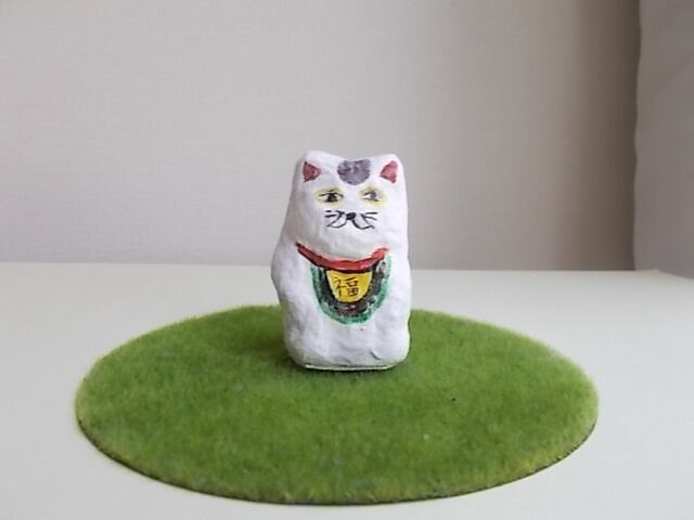 人形オブジェ「招き猫」は、紙子で制作をしています。